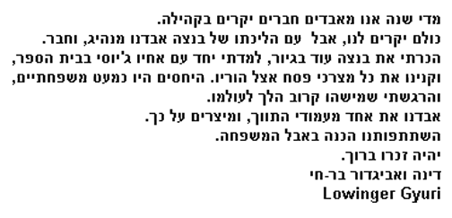 greatly pleased and surprised to find on my last visit to Israel that Bence, in