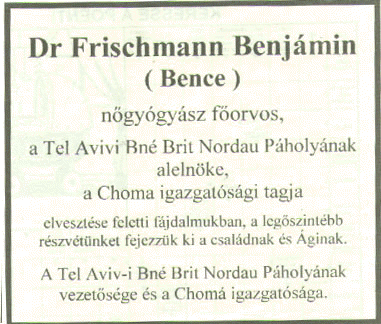 kaptam a szomoru hirt Bence halalarol Fricitol. Bence jo ember volt,