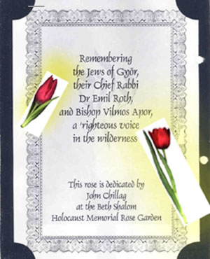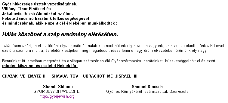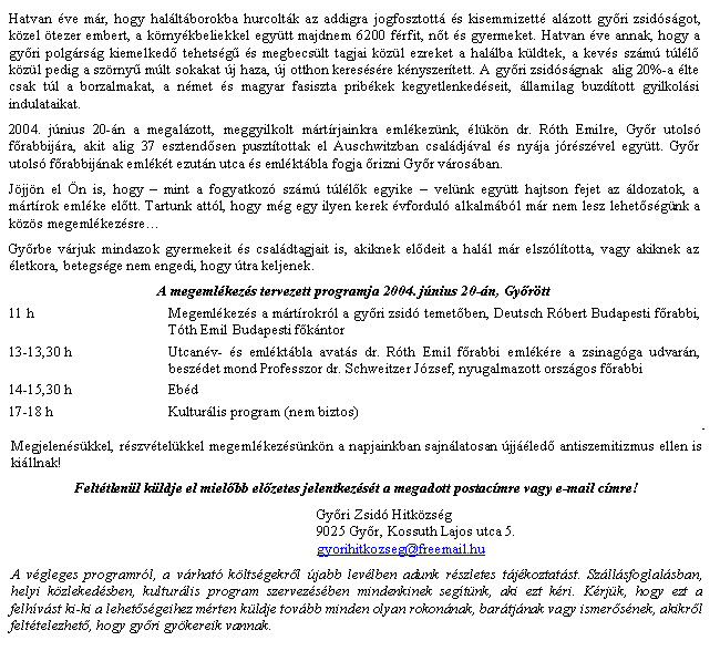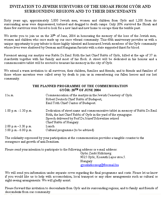 külön köszönöm, hogy a 2004. június 20-i Holocaust emléknap győri